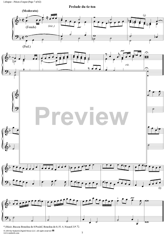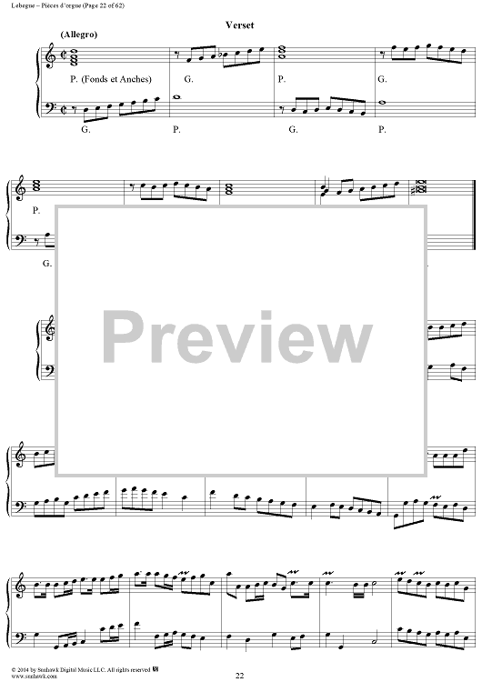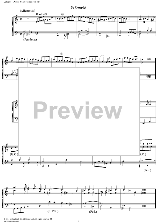 Digital Sheet Music for Pièces d'orgue by Nicolas Antoine Le Bègue scored for Organ Solo; id:305776