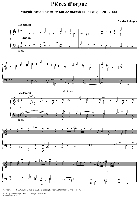 "Pièces d'orgue" Sheet Music by Nicolas Antoine Le Bègue