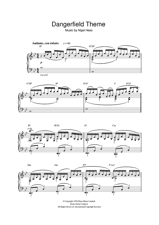 "Dangerfield Theme" Sheet Music by Nigel Hess