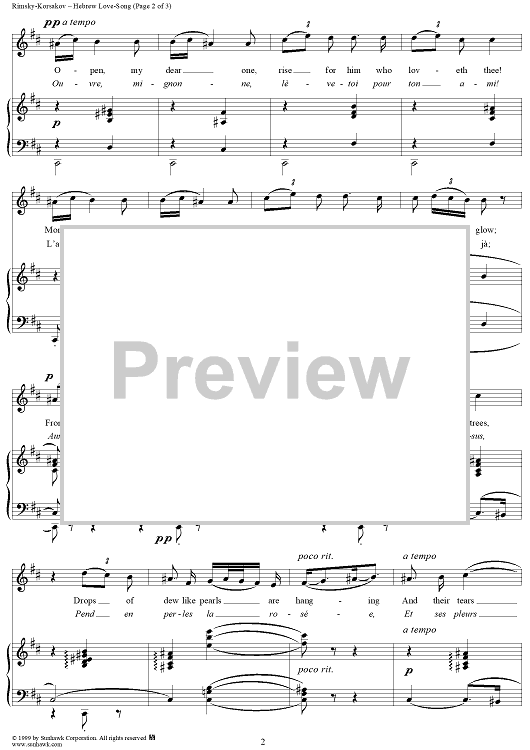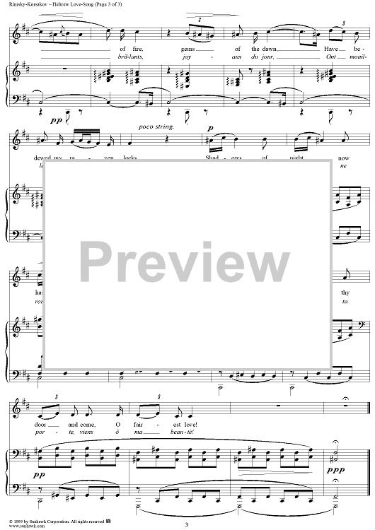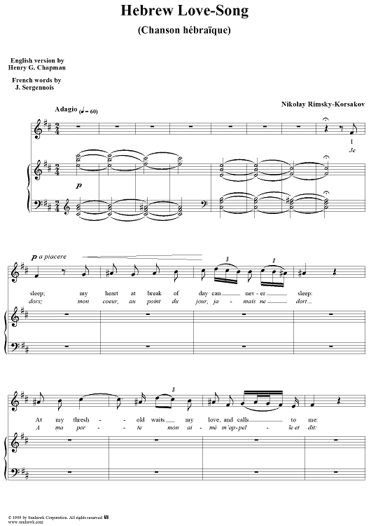 Digital Sheet Music for Hebrew Love-Song by Nikolai Rimsky-Korsakov scored for Voice/Piano; id:113302
