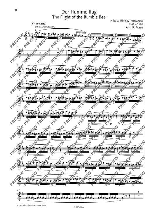 Digital Sheet Music for The Flight of the Bumble Bee by Nikolai Rimsky-Korsakov, Rudolf Mauz scored for Clarinet In Bb And Piano; id:497849