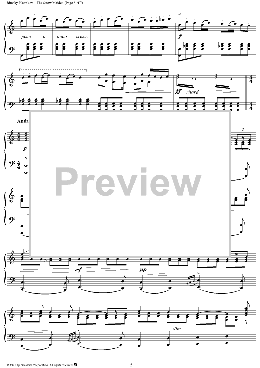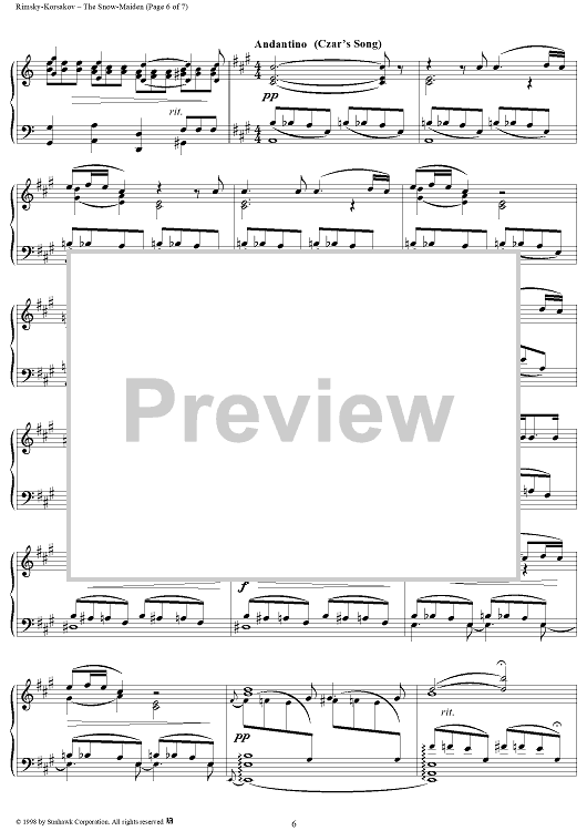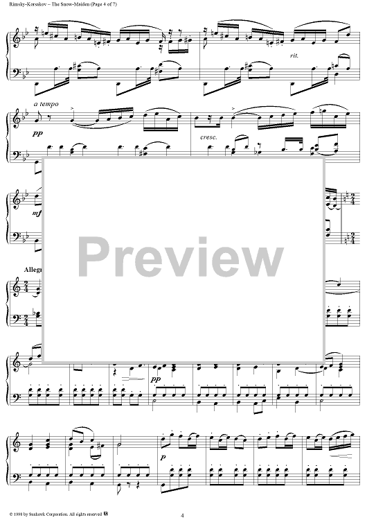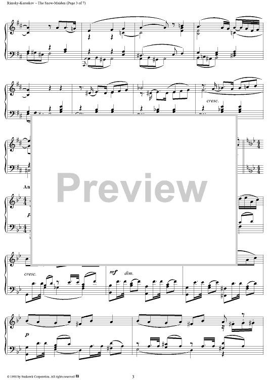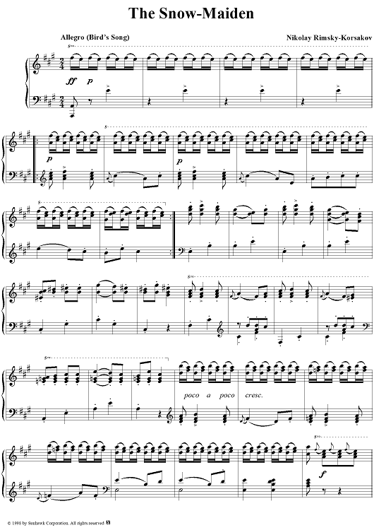 Digital Sheet Music for The Snow Maiden (Highlights for Piano) by Nikolai Rimsky-Korsakov scored for Piano Solo; id:95859