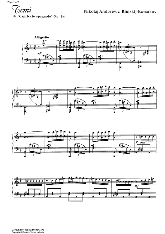 Digital Sheet Music for Themes from Spanish capriccio by Nikolai Rimsky-Korsakov scored for Piano Solo; id:329058