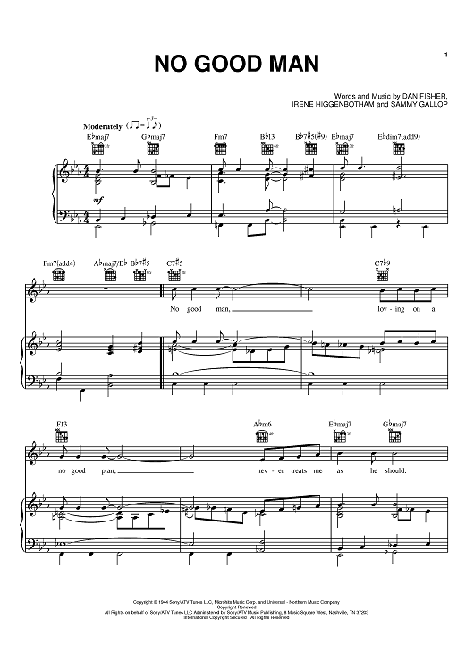 Digital Sheet Music for No Good Man by Billie Holiday, Sammy Gallop, Nina Simone, Dan Fisher, Irene Higgenbotham scored for Piano/Vocal/Chords; id:373597