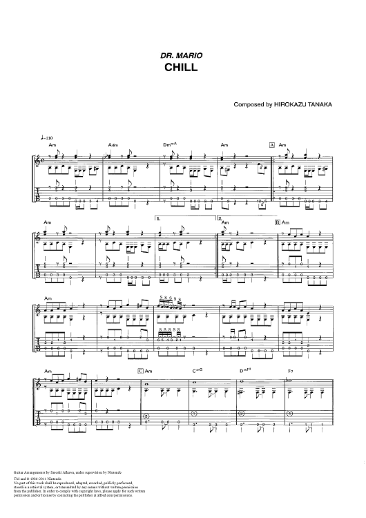Digital Sheet Music for Dr. Mario: Chill by Hirokazu Tanaka, Satoshi Aikawa scored for Guitar Tab; id:444060