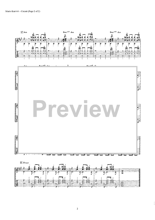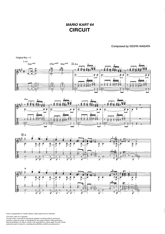 Digital Sheet Music for Mario Kart 64: Circuit by Satoshi Aikawa, Kenta Nagata scored for Guitar Tab; id:444062