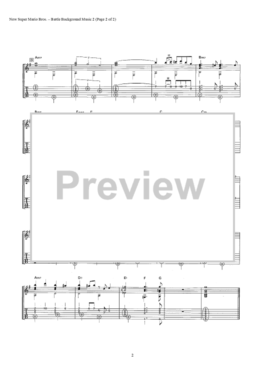Digital Sheet Music for New Super Mario Bros.: Battle Background Music 2 by Koji Kondo, Satoshi Aikawa scored for Guitar Tab; id:444085