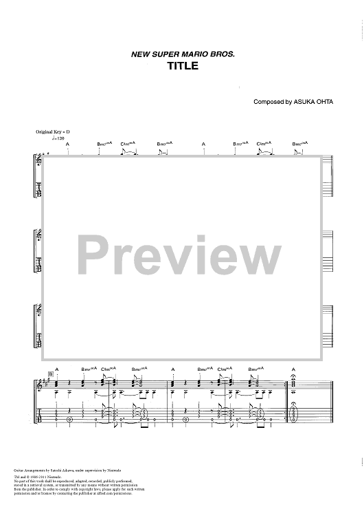 Digital Sheet Music for New Super Mario Bros.: Title by Satoshi Aikawa, Asuka Ohta scored for Guitar Tab; id:444063