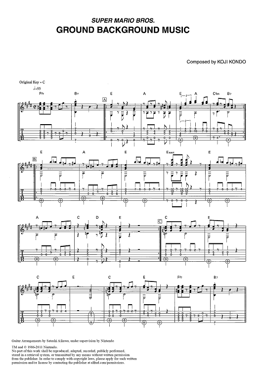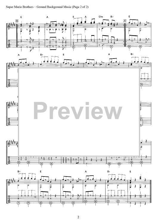 Digital Sheet Music for Super Mario Bros.: Ground Background Music by Koji Kondo, Satoshi Aikawa scored for Guitar Tab; id:444066