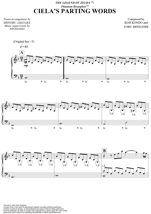 Digital Sheet Music for The Legend of Zelda: Phantom Hourglass Ciela's Parting Words by Koji Kondo, Toru Minegishi, Shinobu Amayake scored for Piano Solo; id:444832
