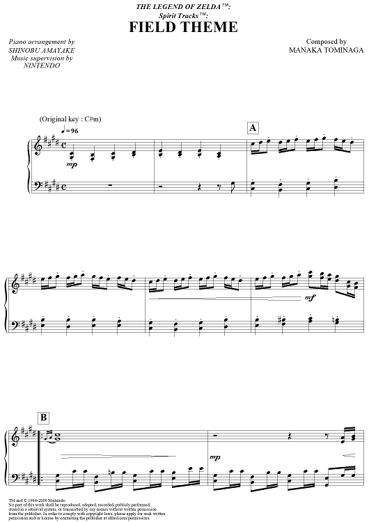 Digital Sheet Music for The Legend of Zelda: Spirit Tracks: Field Theme by Shinobu Amayake, Manaka Tominaga scored for Piano Solo; id:444833