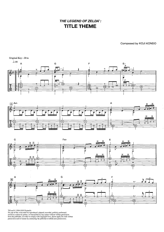 Digital Sheet Music for The Legend of Zelda: Title Theme by Koji Kondo scored for Guitar Tab; id:443458