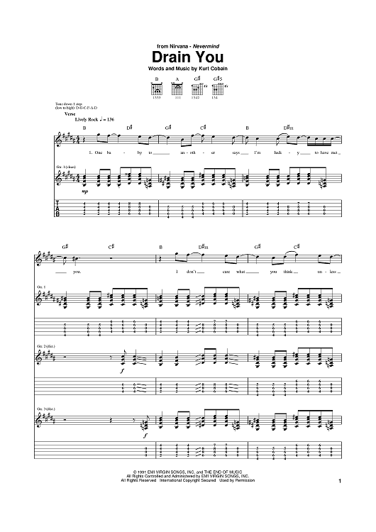Digital Sheet Music for Drain You by Kurt Cobain, Nirvana scored for Guitar Tab; id:372454