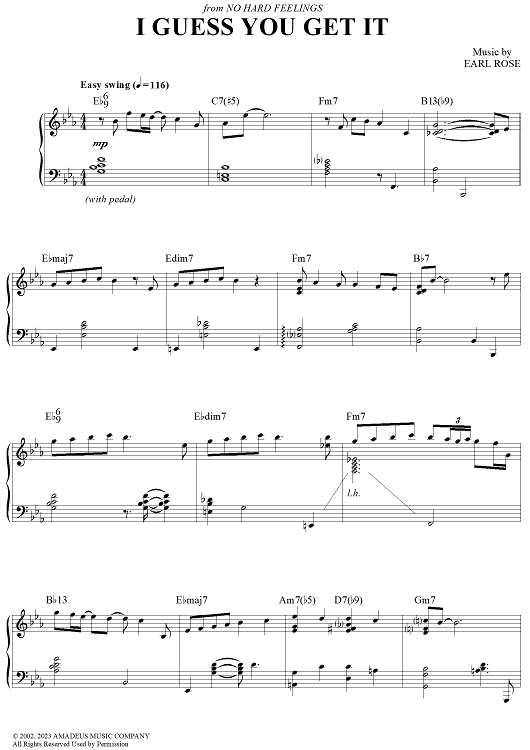 Digital Sheet Music for I Guess You Get It - from No Hard Feelings by Earl Rose scored for Piano Solo; id:501118