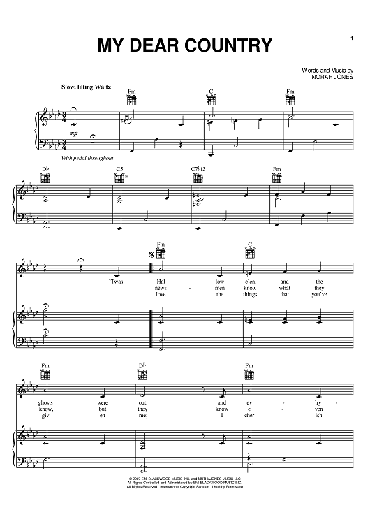 Digital Sheet Music for My Dear Country by Norah Jones scored for Piano/Vocal/Chords; id:397571