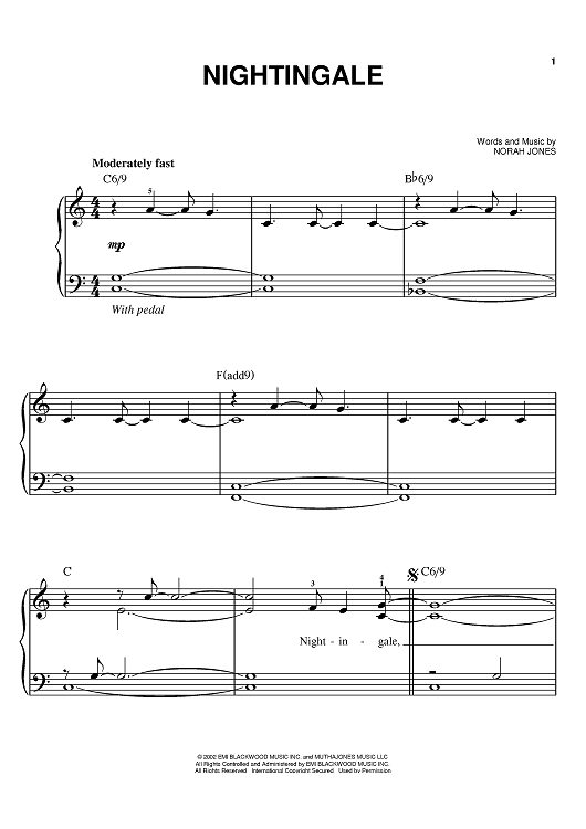 Digital Sheet Music for Nightingale by Norah Jones scored for Easy Piano; id:371217