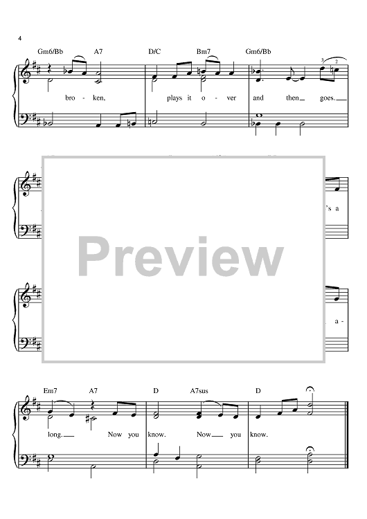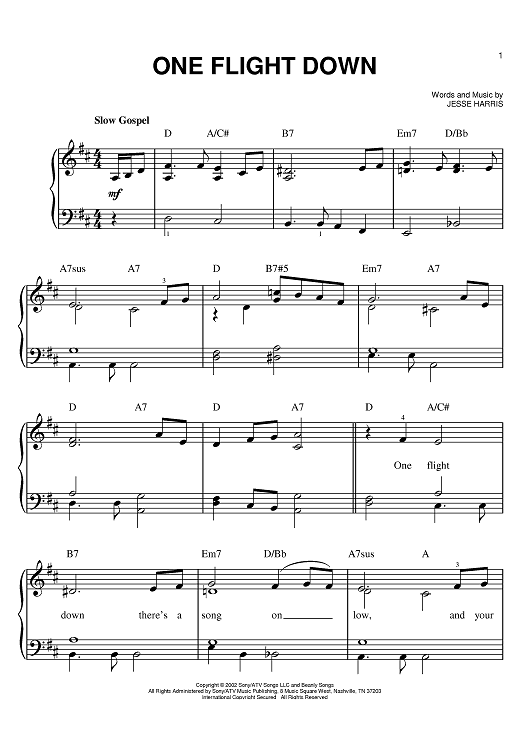 Digital Sheet Music for One Flight Down by Jesse Harris, Norah Jones scored for Easy Piano; id:371209