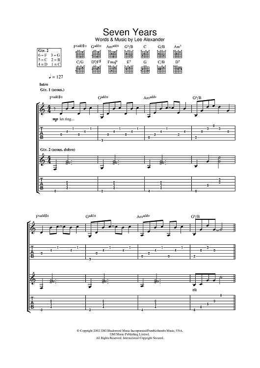 Digital Sheet Music for Seven Years by Norah Jones scored for Guitar Tab; id:377609