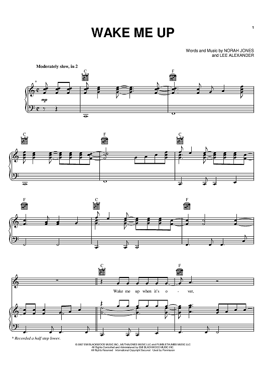 Digital Sheet Music for Wake Me Up by Norah Jones, Lee Alexander scored for Piano/Vocal/Chords; id:397578