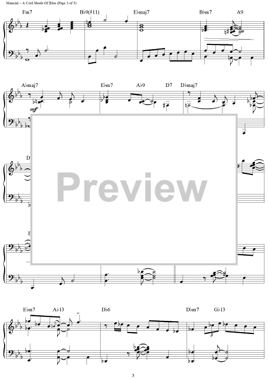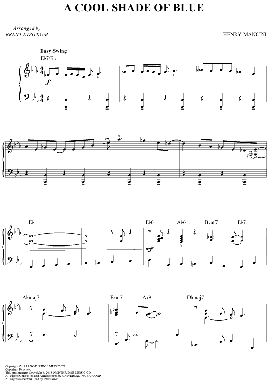 Digital Sheet Music for A Cool Shade Of Blue by Henry Mancini, Brent Edstrom scored for Piano Solo; id:458537