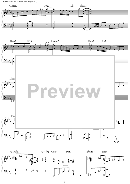 "A Cool Shade Of Blue" Sheet Music by Henry Mancini