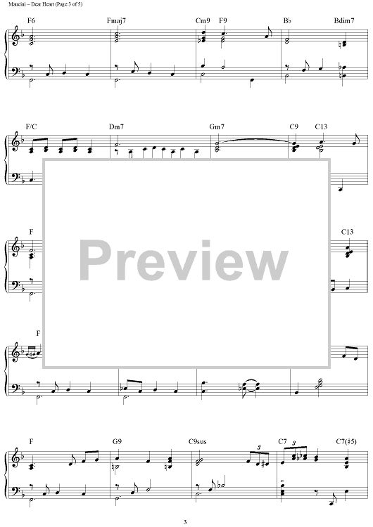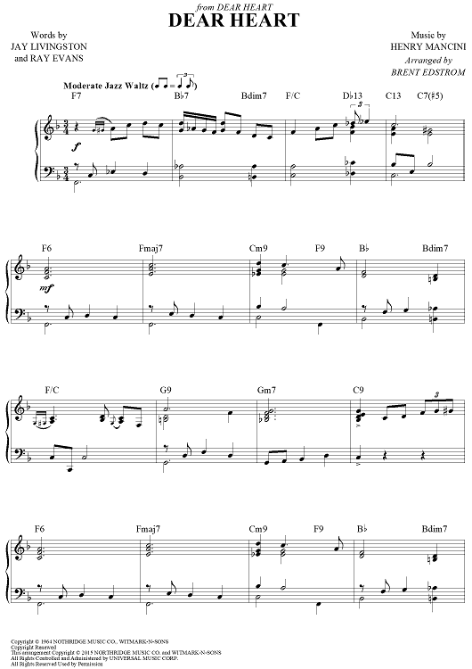 Digital Sheet Music for Dear Heart by Henry Mancini, Jay Livingston, Ray Evans, Brent Edstrom scored for Piano Solo; id:458539