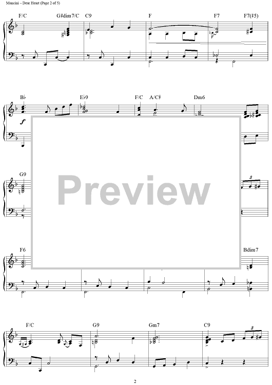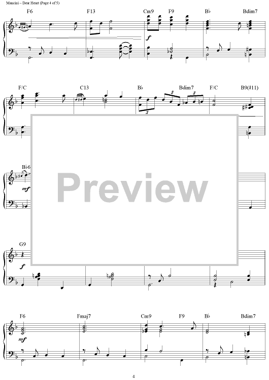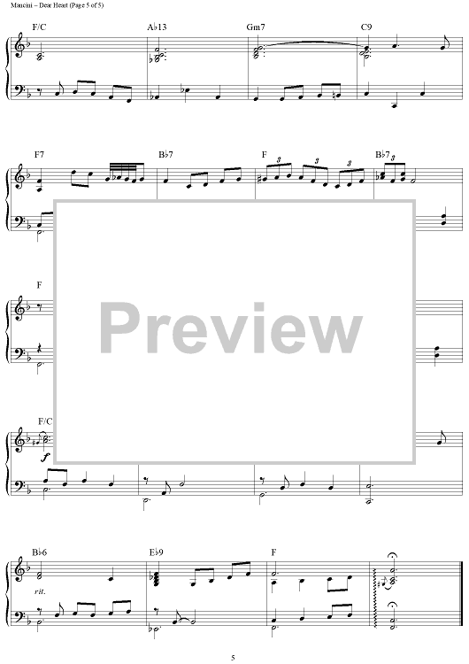 "Dear Heart" Sheet Music by Henry Mancini