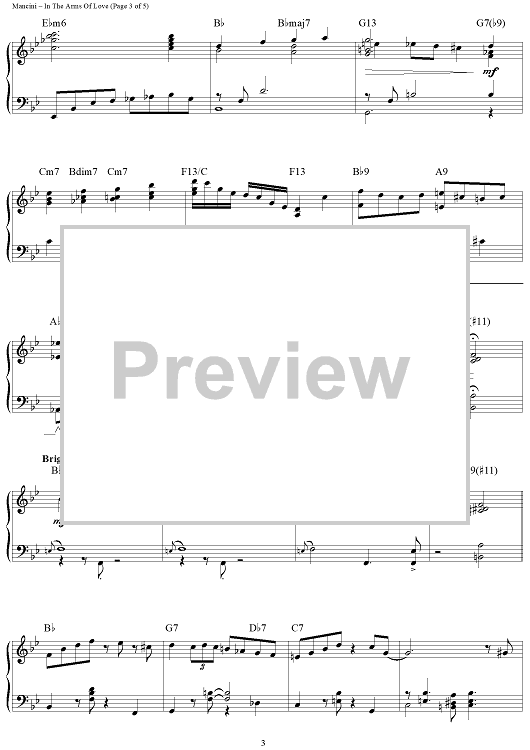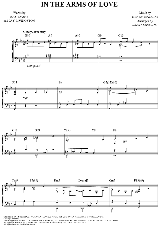 Digital Sheet Music for In The Arms Of Love by Henry Mancini, Jay Livingston, Ray Evans, Brent Edstrom scored for Piano Solo; id:458541