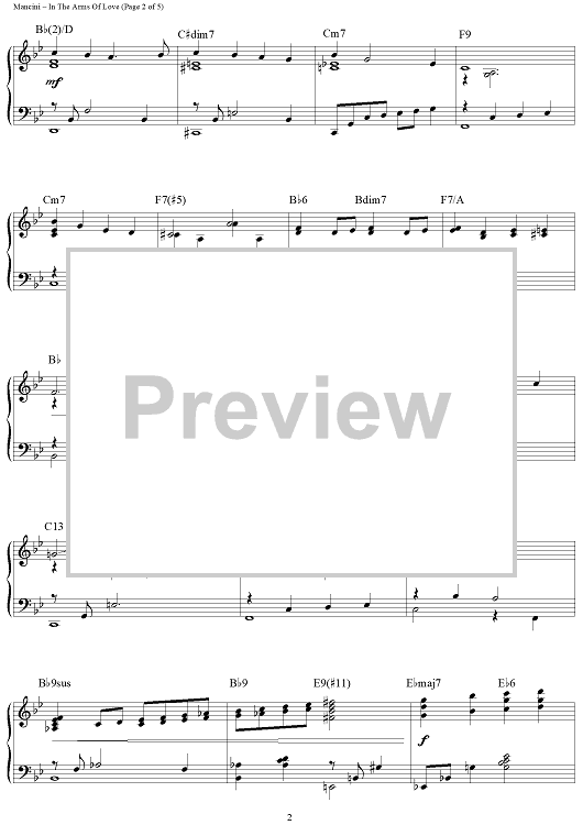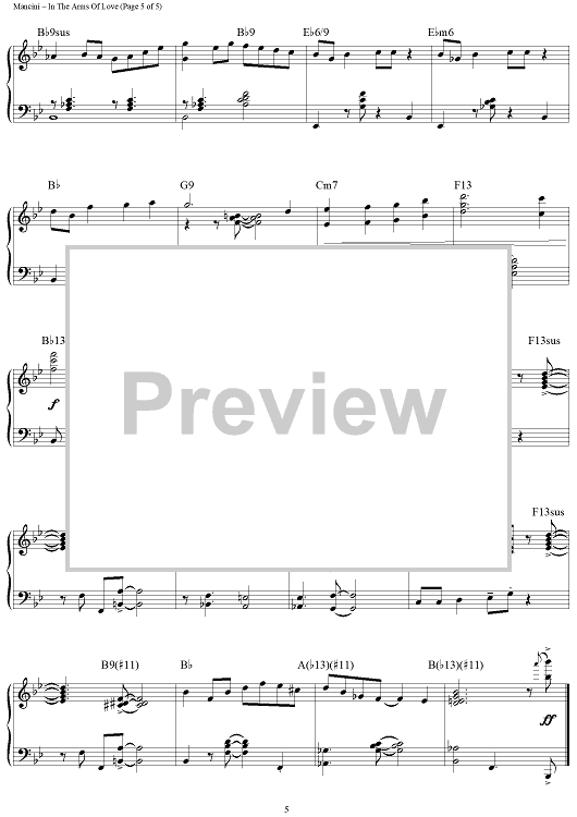 "In The Arms Of Love" Sheet Music by Henry Mancini