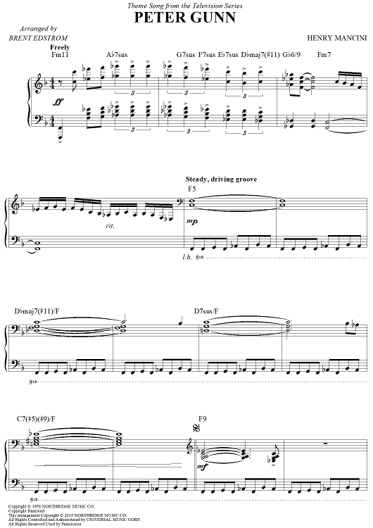 Digital Sheet Music for Peter Gunn by Henry Mancini, Brent Edstrom scored for Piano Solo; id:458548