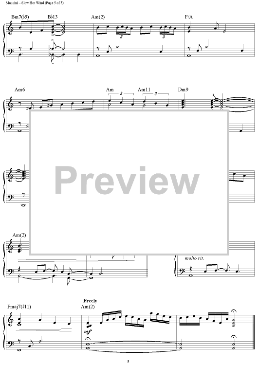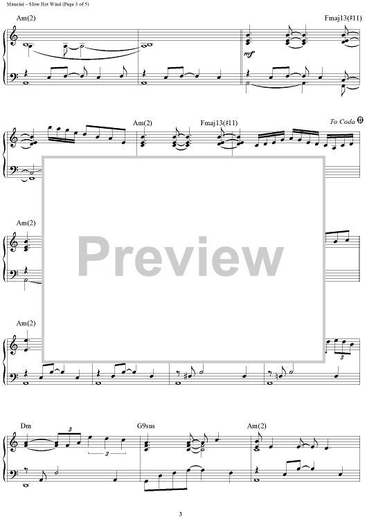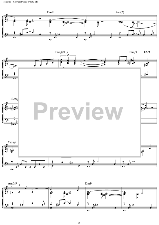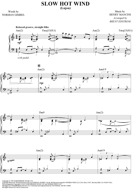 "Slow Hot Wind (Lujon)" Sheet Music by Henry Mancini