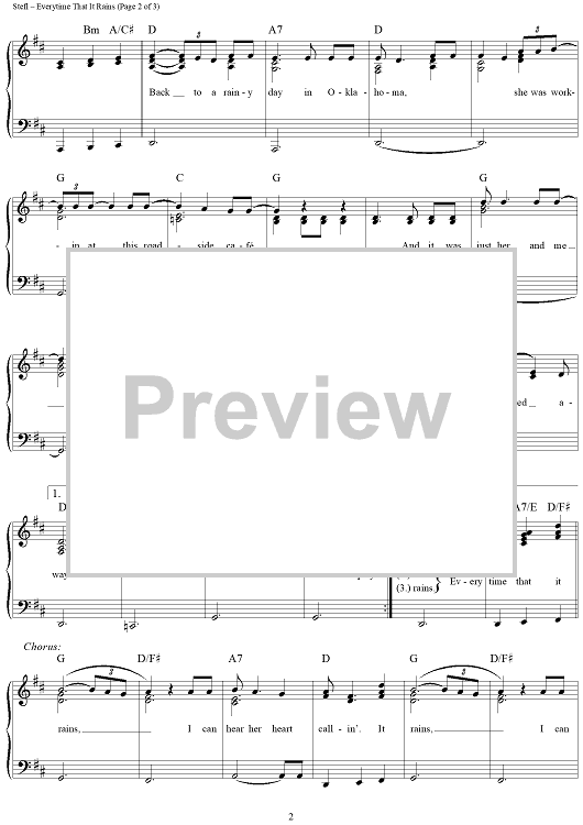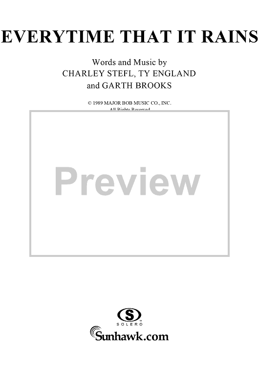 Digital Sheet Music for Everytime That It Rains by Garth Brooks, Charley Stefl, Ty England scored for Piano/Vocal/Chords; id:119222