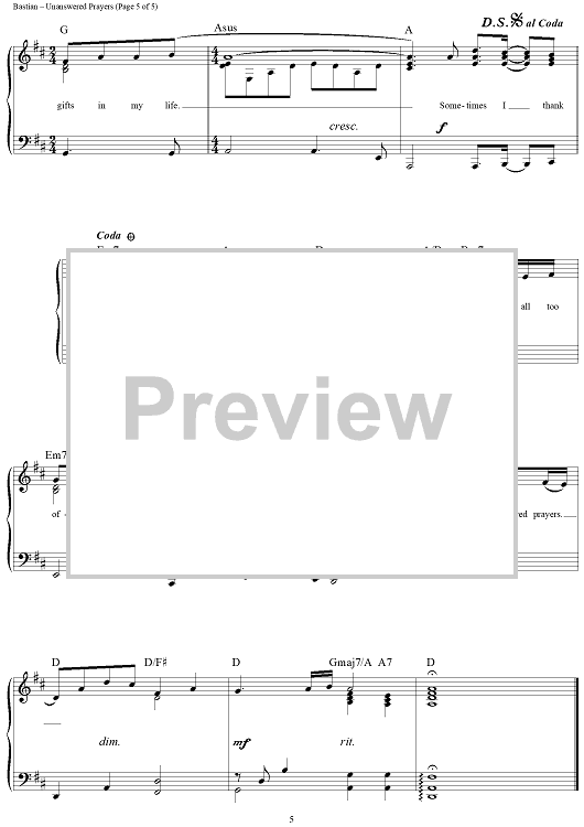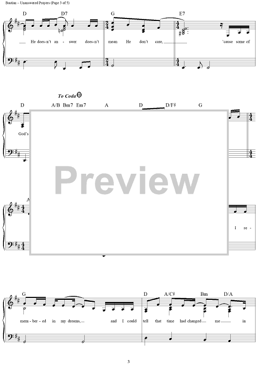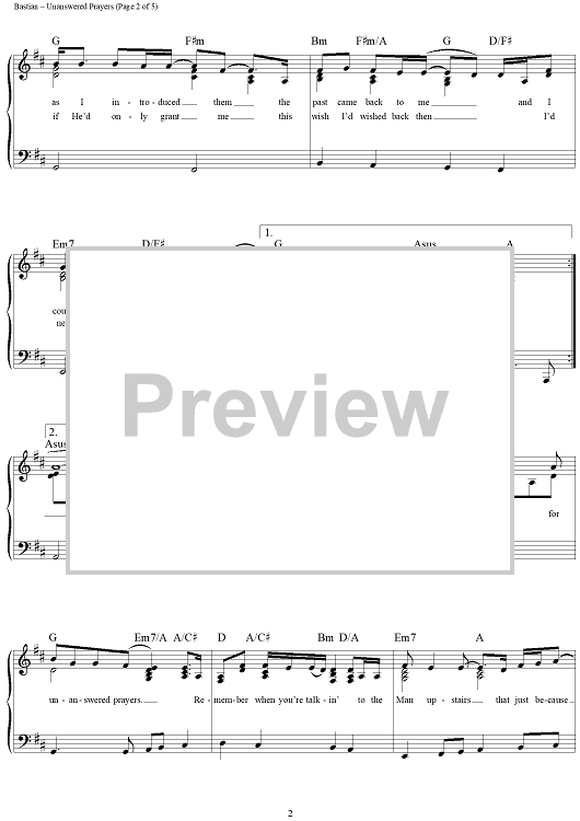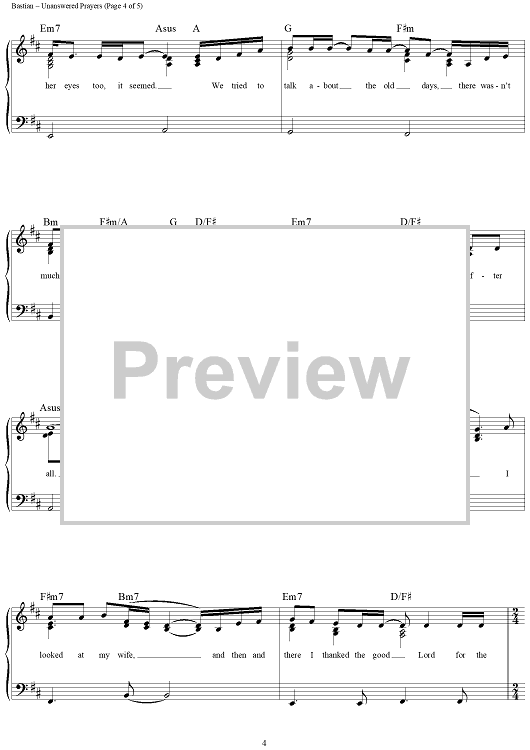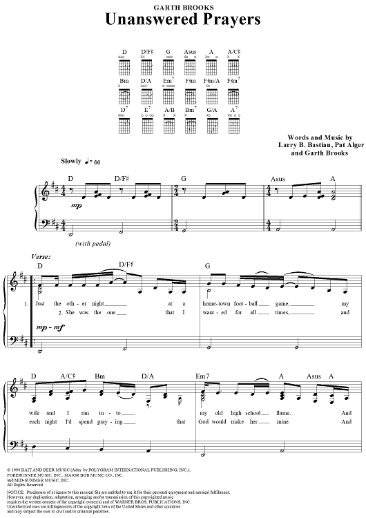 Digital Sheet Music for Unanswered Prayers by Garth Brooks, Pat Alger, Larry B. Bastian scored for Piano/Vocal/Chords; id:109583
