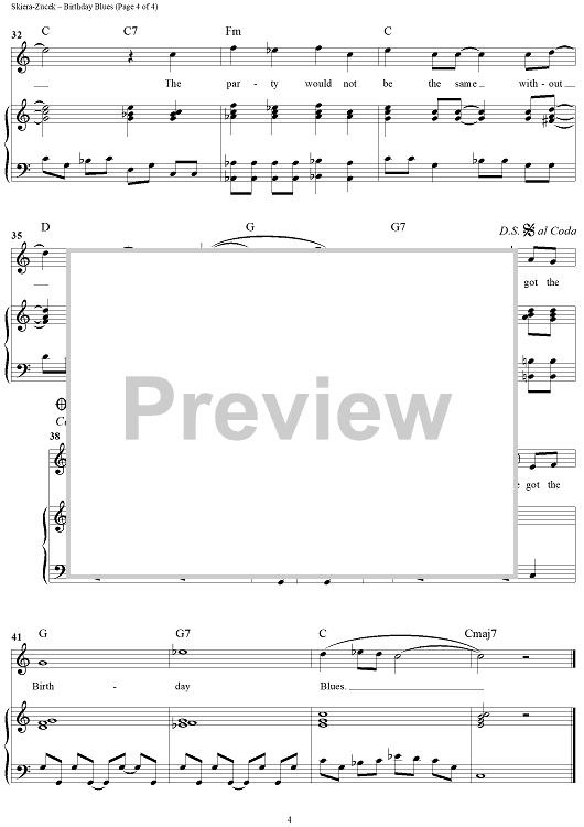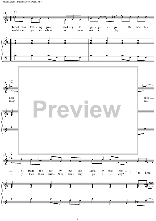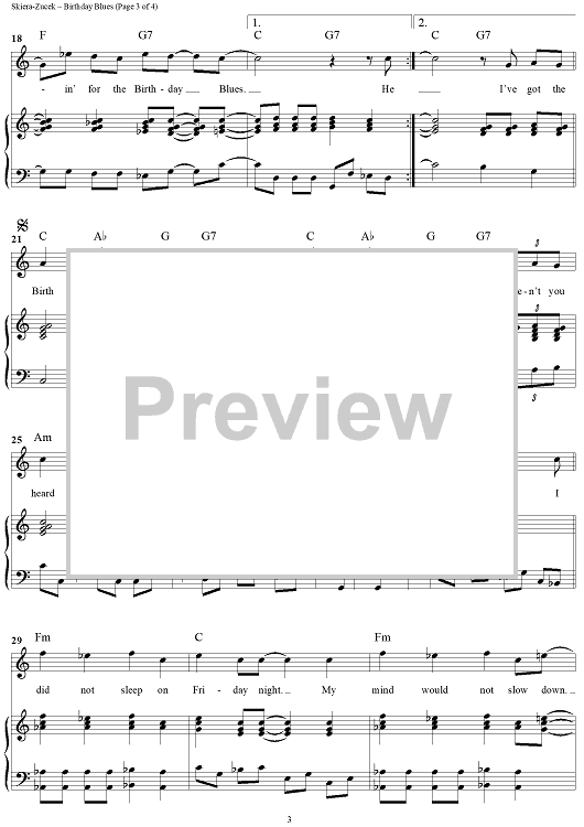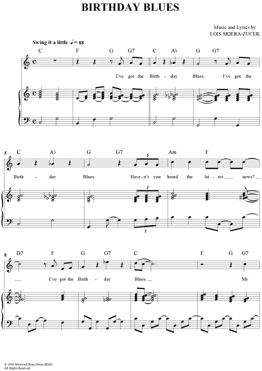Digital Sheet Music for Birthday Blues by Lois Skiera-Zucek scored for Piano/Vocal/Chords; id:259622