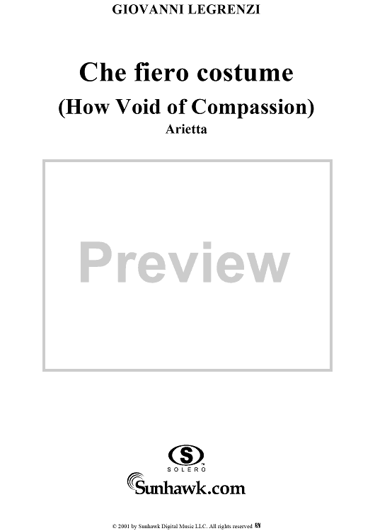 "Che fiero costume (How Void of Compassion)" Sheet Music by Giovanni Legrenzi