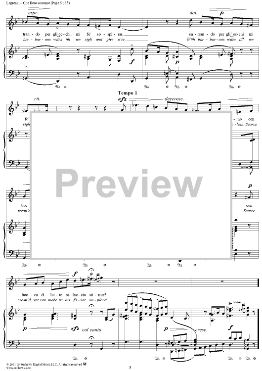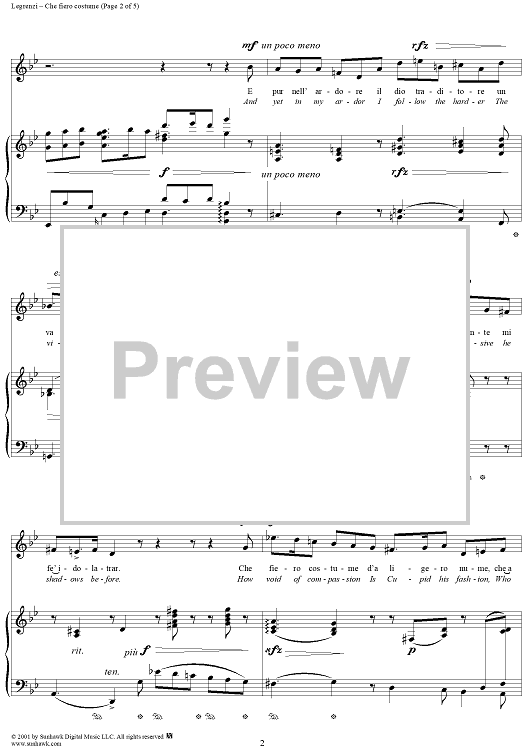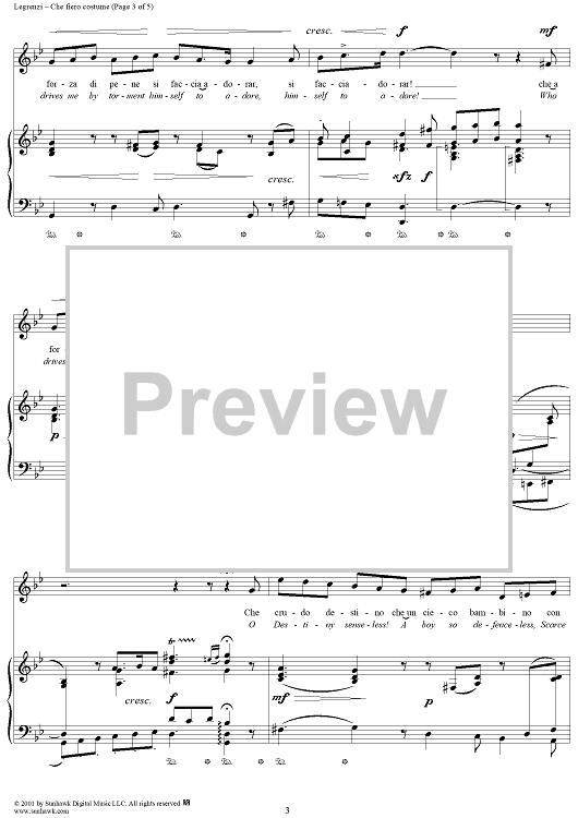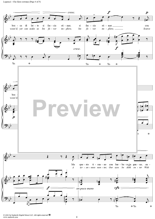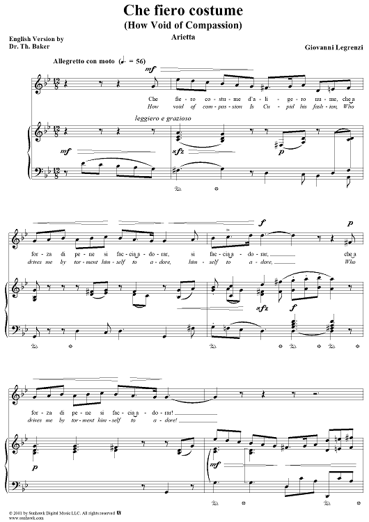 Digital Sheet Music for Che fiero costume (How Void of Compassion) by Giovanni Legrenzi scored for Voice/Piano; id:250681