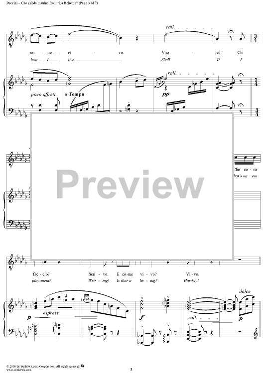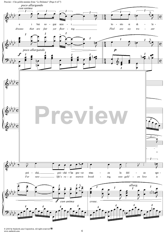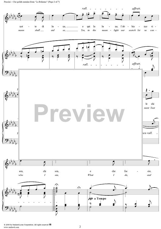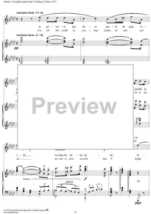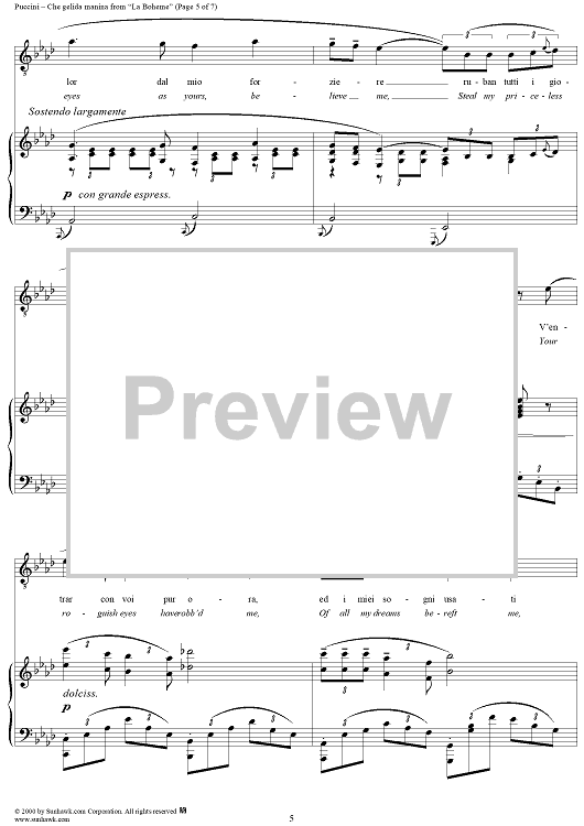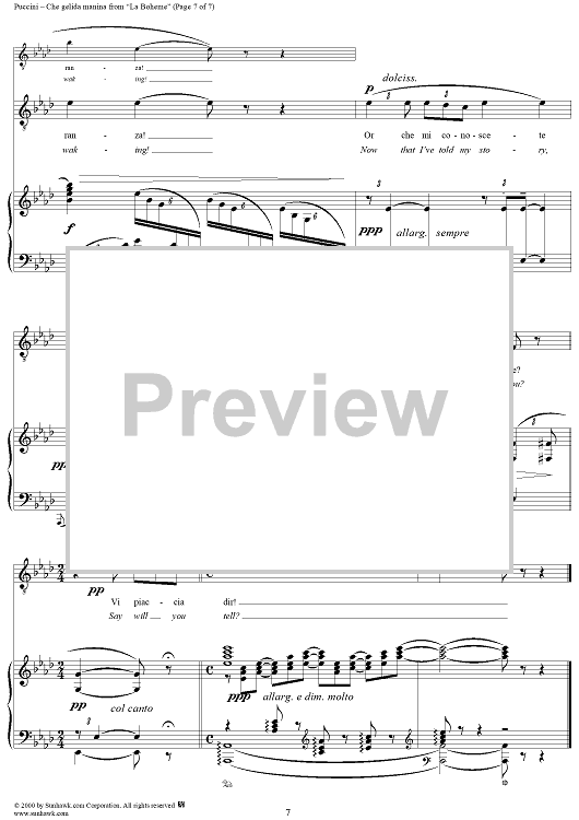 Digital Sheet Music for Che gelida manina - From "La Bohème" by Giacomo Puccini scored for Voice/Piano; id:254889