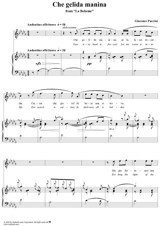 "Che gelida manina - From "La Bohème"" Sheet Music by Giacomo Puccini