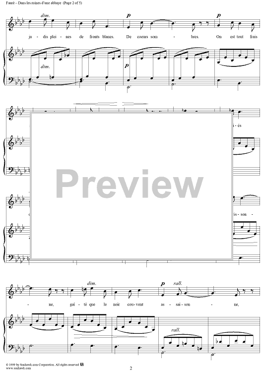 Digital Sheet Music for Dans les ruines d'une abbaye - Op. 2, No. 1 by Gabriel Fauré, Victor Hugo scored for Voice/Piano; id:269994