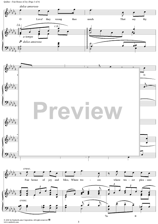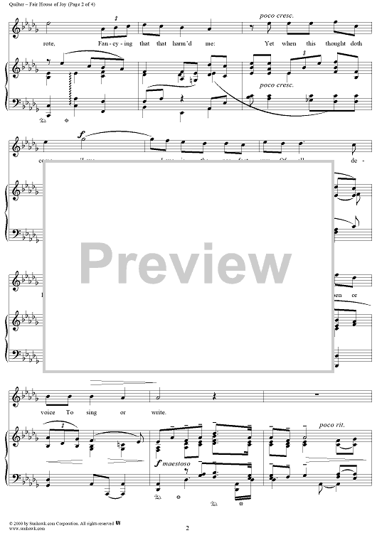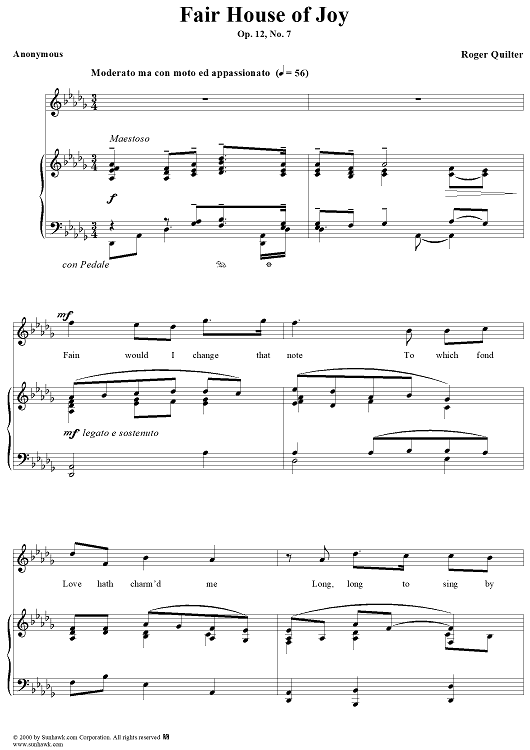 Digital Sheet Music for Fair House of Joy, Op. 12, No. 7 by Roger Quilter, Unknown Writer scored for Voice/Piano; id:254986