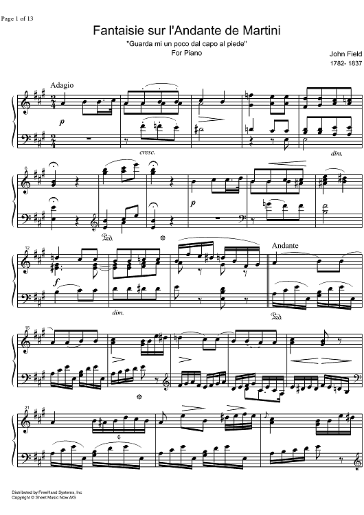 Digital Sheet Music for Fantaisie sur l'Andante de Martini by John Field scored for Piano Solo; id:329528