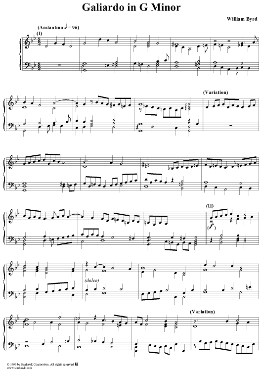 Digital Sheet Music for Galiardo in G minor by William Byrd scored for Piano Solo; id:263305