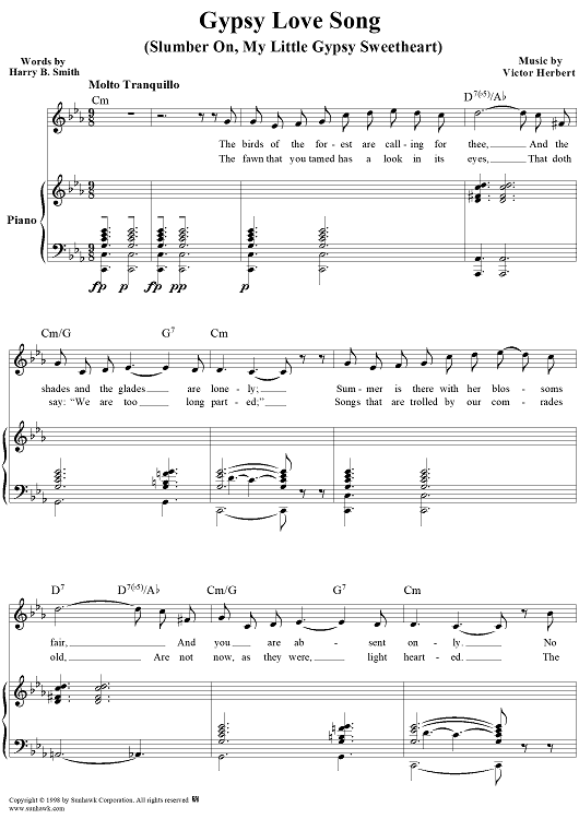 Digital Sheet Music for Gypsy Love Song by Harry B. Smith, Victor Herbert scored for Piano/Vocal/Chords; id:109201