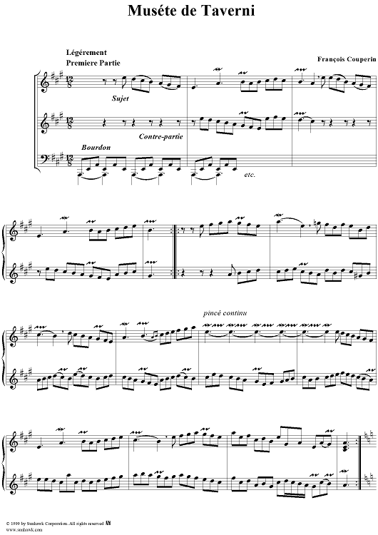 Digital Sheet Music for Harpsichord Pieces, Book 3, Suite 15, No. 5: Muséte de Taverni by Francois Couperin scored for Piano Solo; id:272516