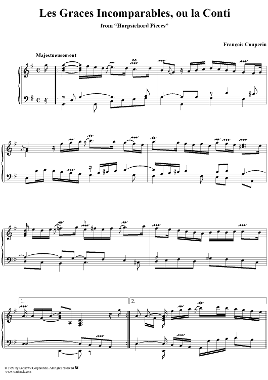 "Harpsichord Pieces, Book 3, Suite 16, No. 1: Les Graces incomparables, ou la Conti" Sheet Music by Francois Couperin