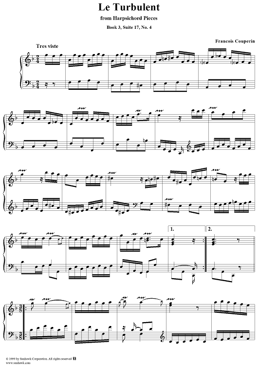 "Harpsichord Pieces, Book 3, Suite 18, No. 4: Le Turbulent" Sheet Music by Francois Couperin