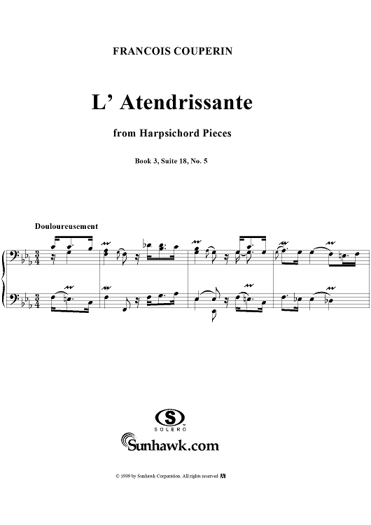 "Harpsichord Pieces, Book 3, Suite 18, No. 5: L'Atendrissante" Sheet Music by Francois Couperin