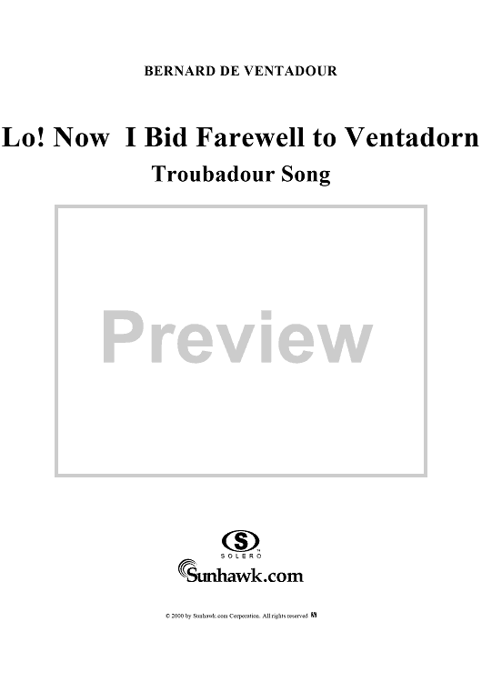 Digital Sheet Music for Lo! Now I Bid Farewell to Ventadorn (Troubadour song) by Bernard de Ventadorn scored for Voice/Piano; id:264830