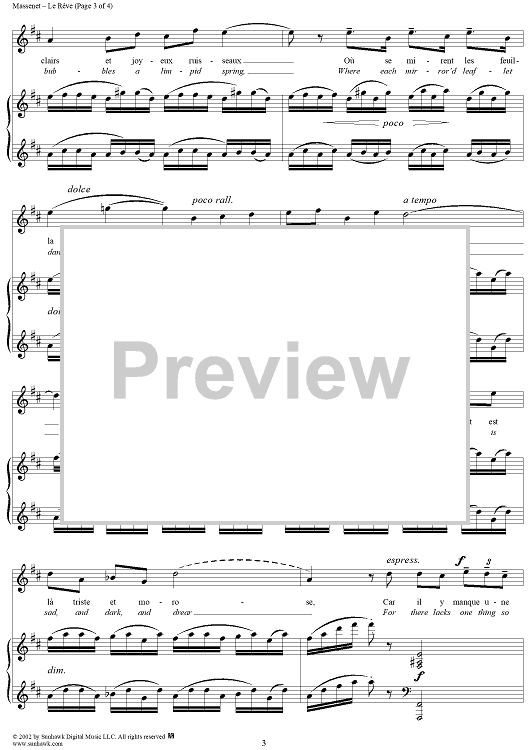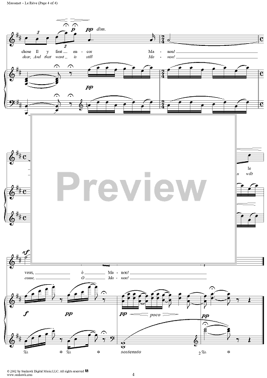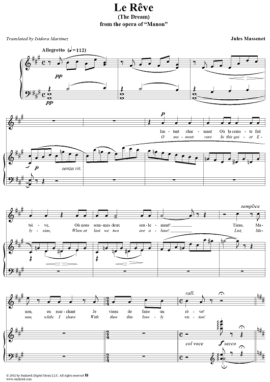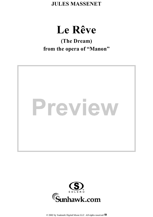 Digital Sheet Music for Manon, The Dream by Jules Massenet scored for Voice/Piano; id:252760