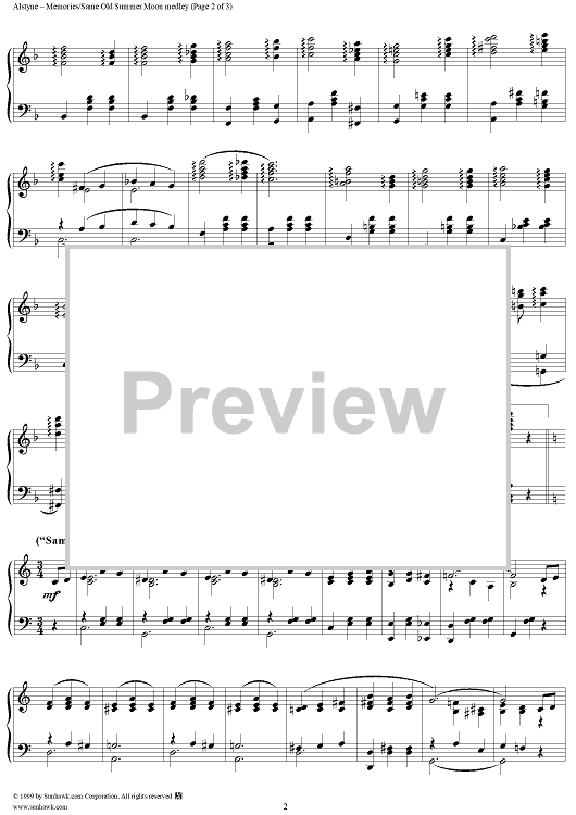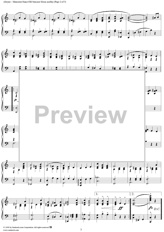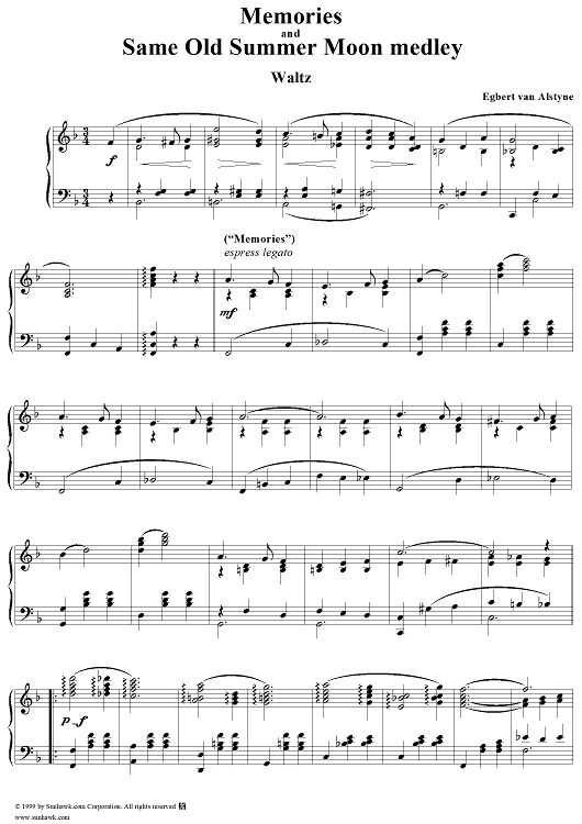 Digital Sheet Music for Memories / Same Old Summer Moon medley (Waltz) by Egbert Van Alstyne scored for Piano Solo; id:278016